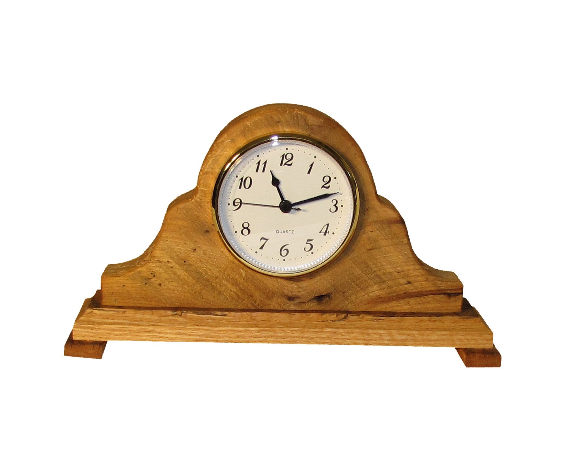 Reclaimed barn wood tambour mantle clock with 3 3/4" diameter dial. Clock is manufactured using reclaimed oak barn wood from the Ohio, Indiana and Kentucky area. The beauty of reclaimed wood are the knots, splits, weathering, nail holes, worm holes and cracks. The characteristics of the wood used in each clock are unique. No two clocks are the same and they are truly one-of-a-kind. Each clock is finished using tongue oil to bring out the natural beauty of the wood color and grain.