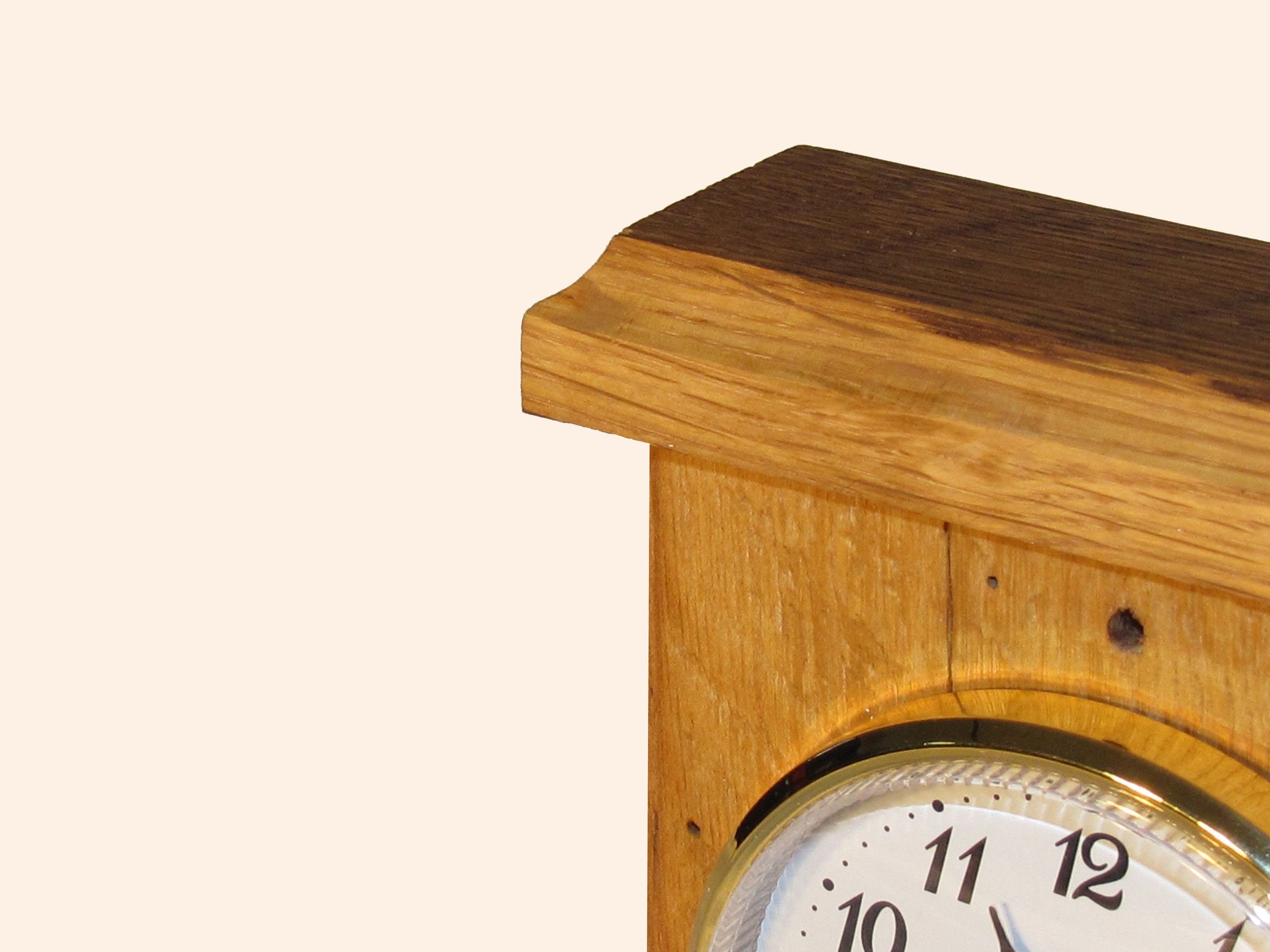 This clock body is made from reclaimed 1-1/2” thick, circle sawn, oak boards that were originally used to separate animal stalls in barns. Saw marks are still visible on both sides of the clock body, top and bottom. The top and bottom of the clock are ¾” thick oak, circle sawn reclaimed oak.